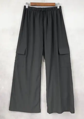 Wide leg silhouette, cargo pockets on both sides, elastic waistband with drawstring, lightweight drapey fabric, relaxed fit, pull on style, hand washable, made in Mexico