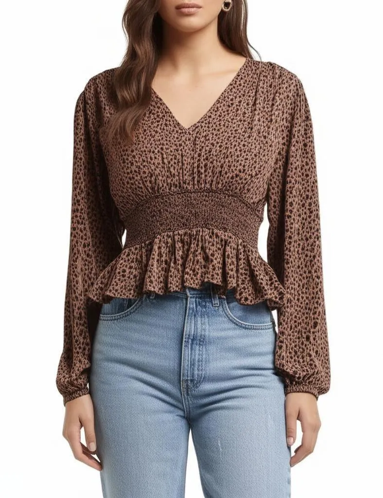 Chic and versatile AFRM women’s blouse in a bold leopard print. This lightweight woven top features... Show more