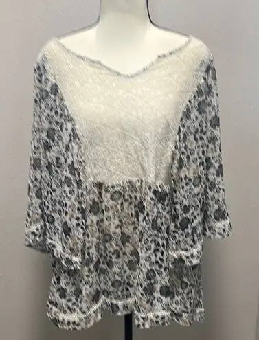 This Torrid blouse combines a relaxed fit with an asymmetrical design, highlighted by a white lace V... Show more