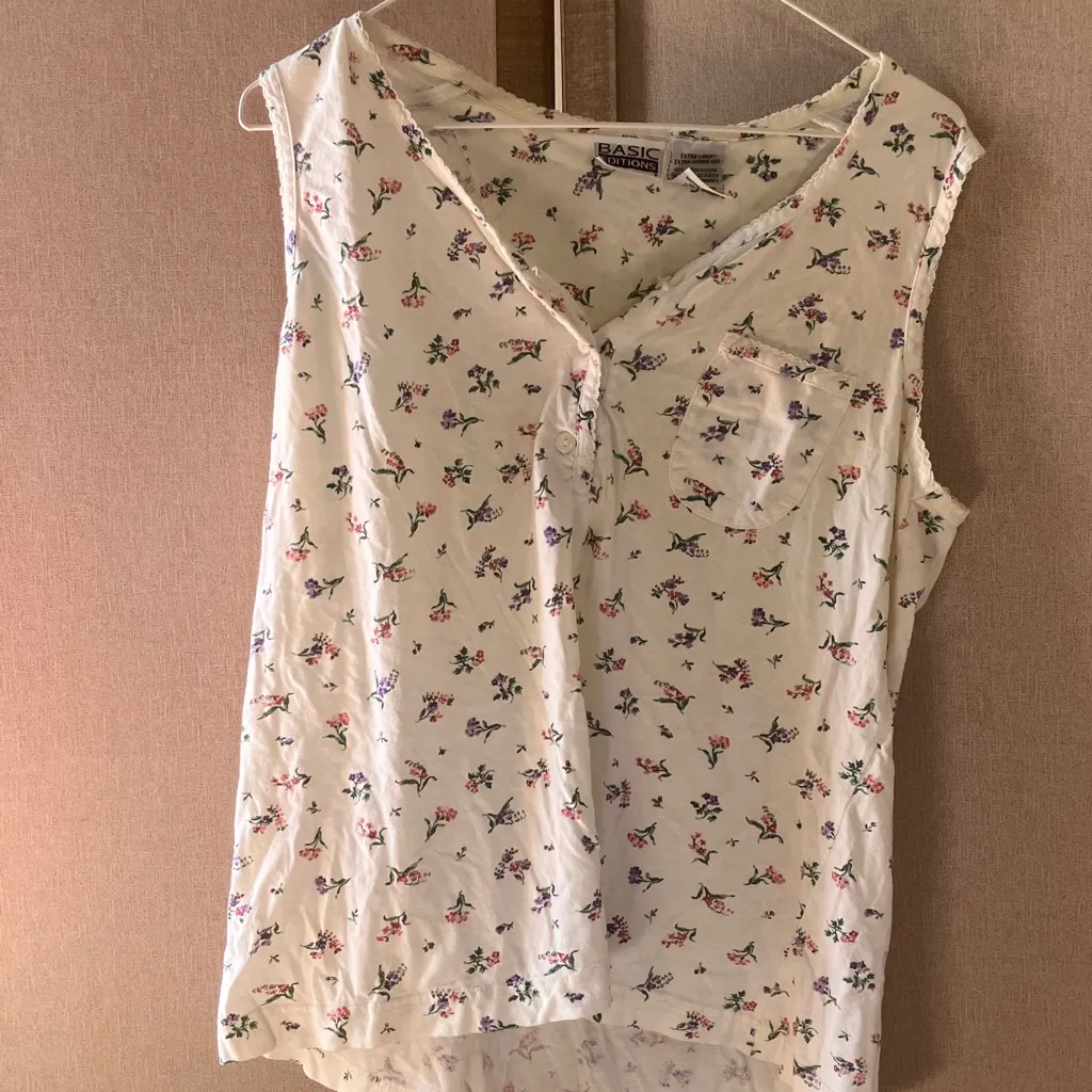 Basic Editions White Floral Sleeveless Blouse extra large Size XL - $16 - From Mindy