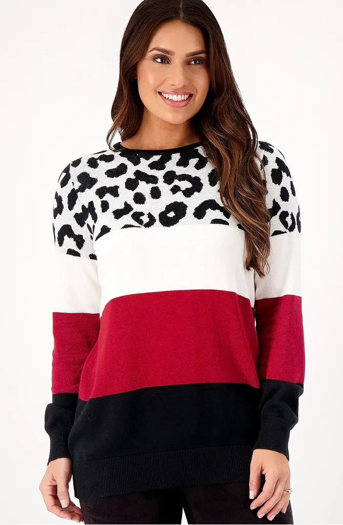 Belle by Kim Gravel Women’s Animal Color Block Sweater 28” P2P Black Size 3X - $52 New With Tags - From Cassandra