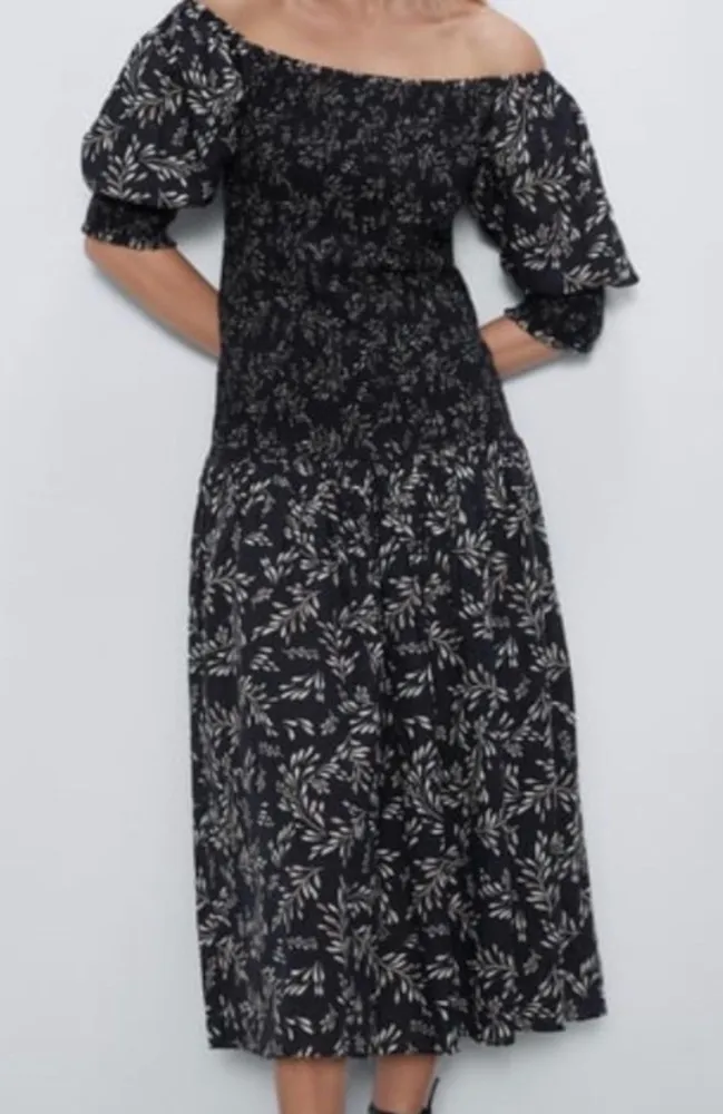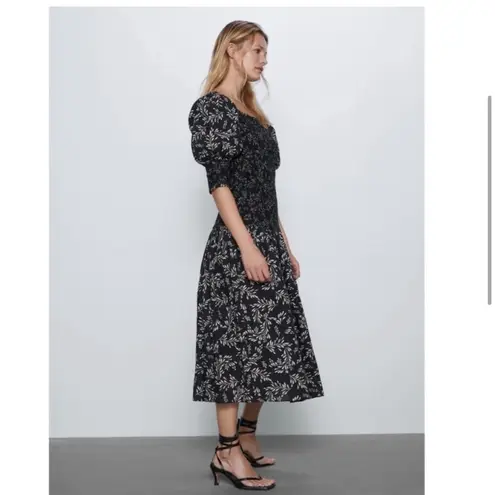 New without tags, never worn! Zara "The Penny" midi dress. Black with beige/white and orange/red fl... Show more