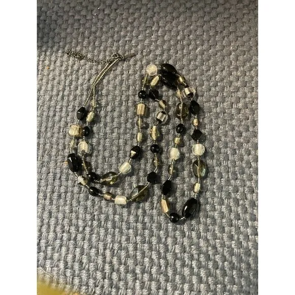 This listing is for a Lane Bryant necklace. Long. Black and clear glass beads. Adjustable. Measu... Show more