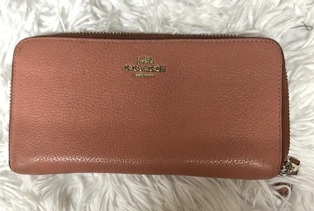 Vintage Pale Pink Zipper Wallet has some peeling inside