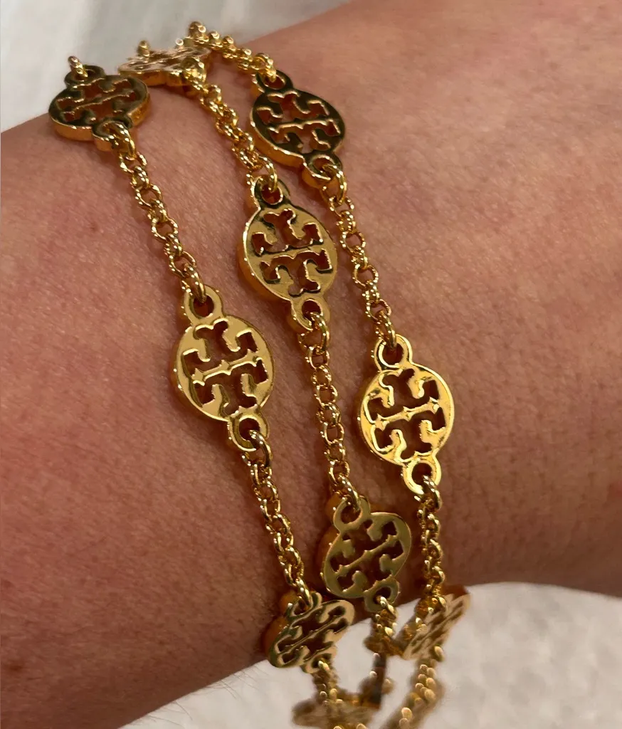 This is a size 8 bracelet = 8 inch bracelet with adjustable links. It will come with a Tory Burch d... Show more