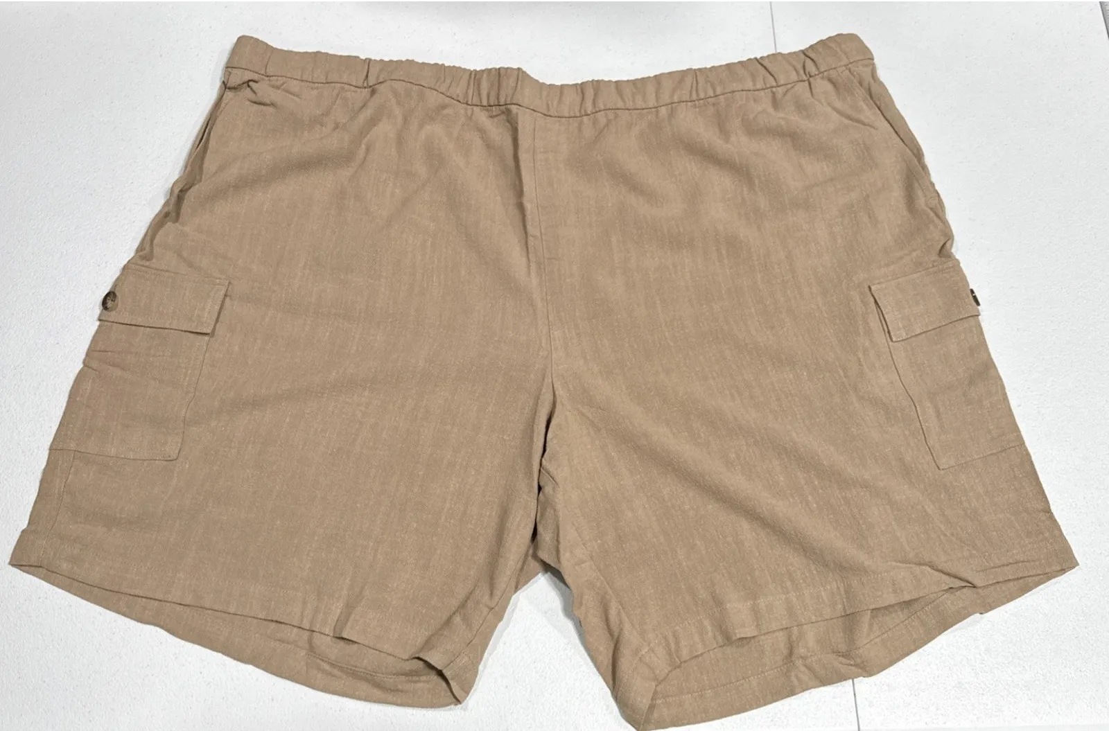 These Susan Graver Pure Women's Pull-On Bermuda Shorts in size 4XP are a stylish and comfortable option for travel or casual wear. Made from a brown rayon-linen blend, they feature a solid pattern with a flat front and button accents. The shorts have an elastic waist and slash and cargo pockets, making them practical for any summer or spring activities. The modern and breathable design is perfect for a vacation or cruise, offering a touch of style for the fashion-forward woman. New