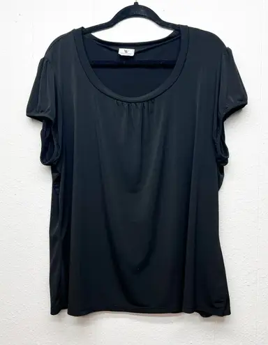 Worthington women's black top. Scoop neck. Short sleeves with elastic hem. Stretch. In good used con... Show more