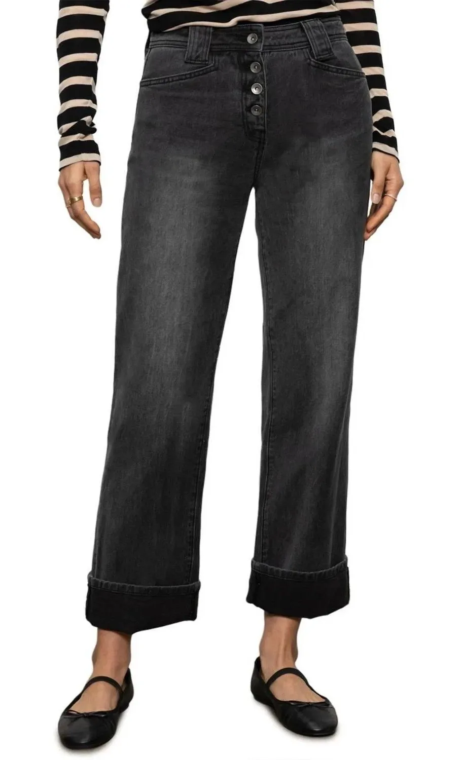 Sanctuary Dark Smoke Luna Cuffed Pants Standard Rise Straight Crop 27 NWT Button Fly $129