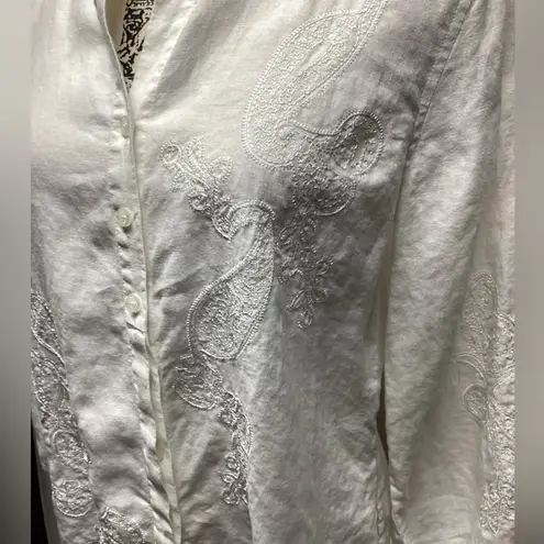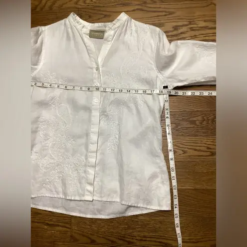 Absolutely gorgeous blouse from Liz Claiborne. White linen with embroidered floral accents. Band col... Show more
