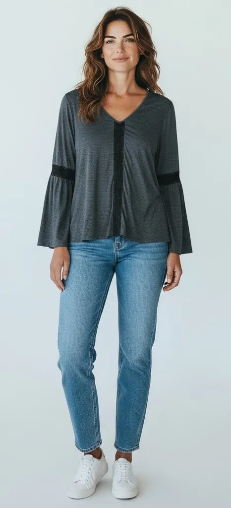 Knox Rose women’s v-neck long sleeve shirt top crochet knit accents Lagenlook blouse Size XXL Excel... Show more