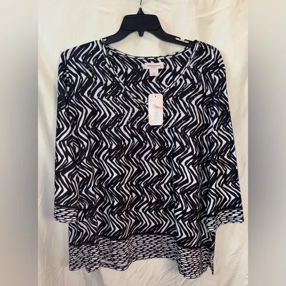 NWT Allison Daley Embellished Border Print 3/4 Sleeve V Neck Knit Top Size 3X Black - $25 New With Tags - From Jeni