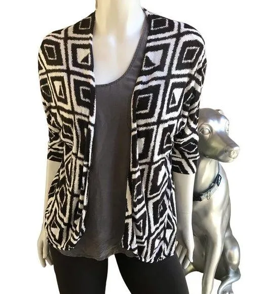 Chico's Black White Geometric Print 3/4 Sleeve Cardigan Women's Size S - $8 - From Heather