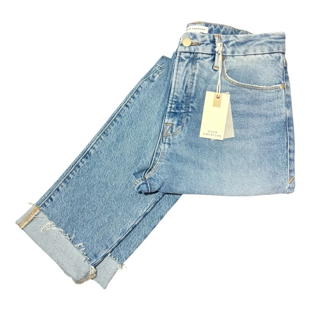 GOOD AMERICAN Weekender distressed straight leg blue jeans #INDIGO249. Size 2/26 Very 90s vibes, hig... Show more