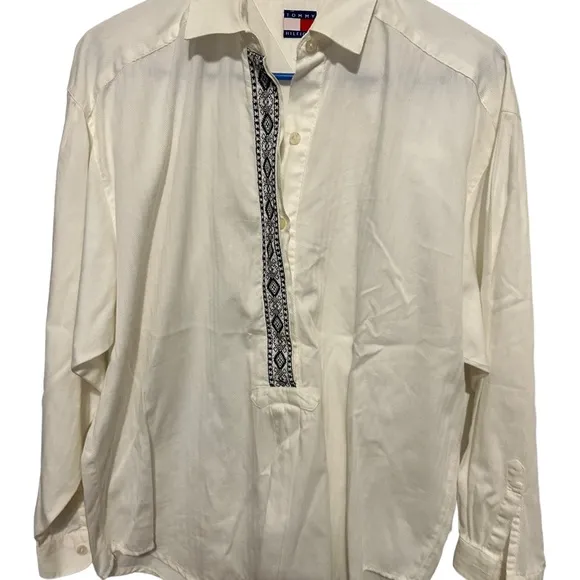 Tommy Hilfiger white long sleeve embroidered pullover shirt size small good condition