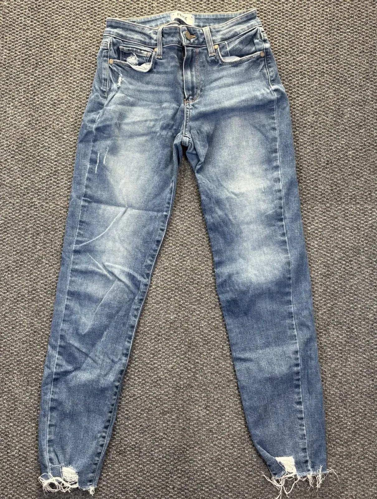 The Paige Jeans Women's 27 Blue Hoxton Ankle Skinny Mid Rise Raw Hem Stretch Denim is a stylish pair... Show more