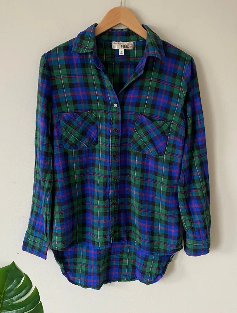 Derek Heart brand, size medium Flannel shirt, plaid print Button down front Double buttons on the ar... Show more