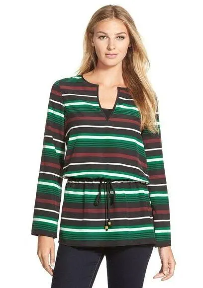 Create a chic, flattering look with this striped woven top by MICHAEL Michael Kors! Crafted with an... Show more