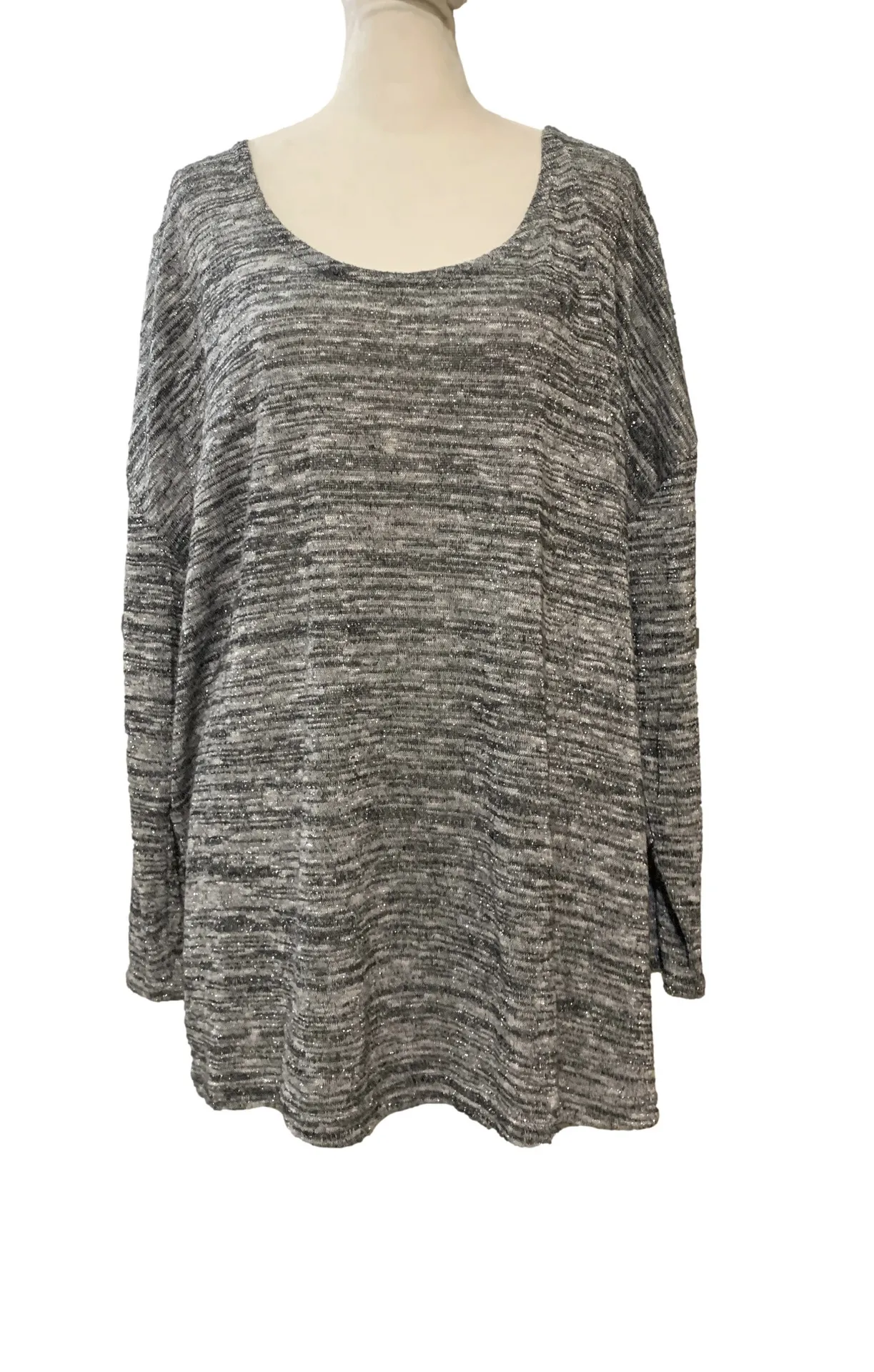 Lane Bryant Gray Metallic Heathered Criss Cross Open Scoop Back Long Sleeve Top. Scoop neckline. Lon... Show more