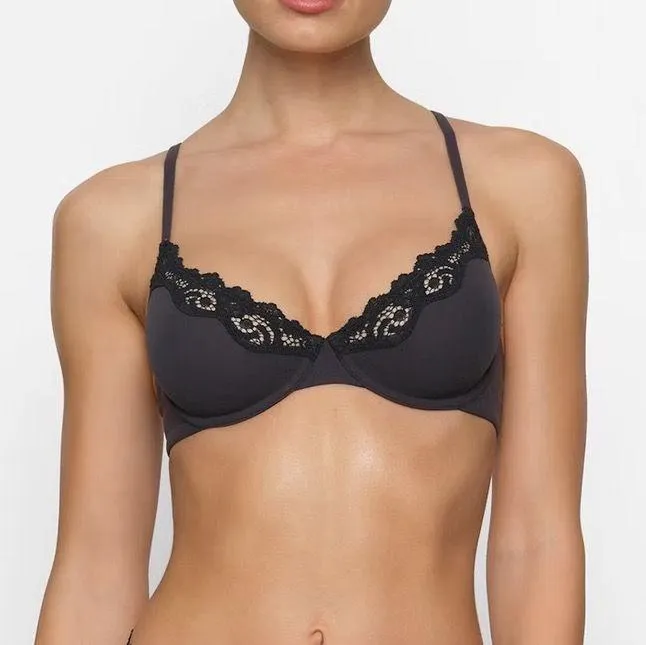 - size 32DDD - new with tags! color: onyx A sexy scoop bra with a comfortable fit and feminine stretchy lace trims. This unlined style features adjustable straps, supportive underwire, and hook and eye back closure. Fits true to size.