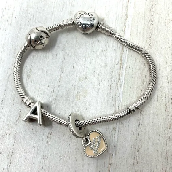 Authentic PANDORA 3 charm sterling silver bracelet: Preowned, in gently worn condition. •Devoted d... Show more