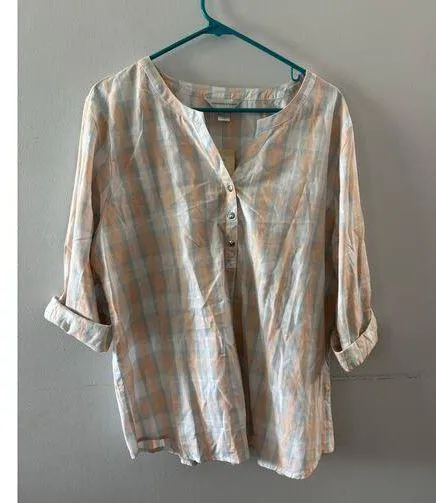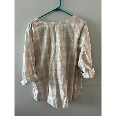 Christopher & Banks Womens Plaid Popover Blouse Size XL Pastel Beachy Coastal White - $22 New With Tags - From Kara