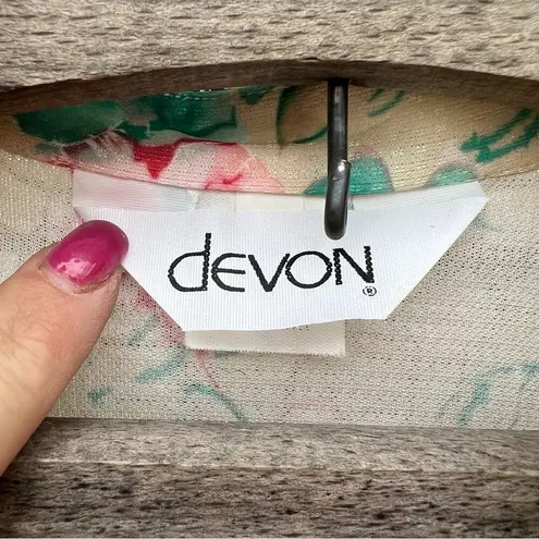 Vintage 60s DEVON butter cream pink and green floral button down polyester blouse Slinky fabric Sec... Show more