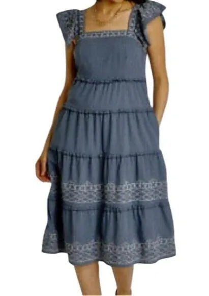 Lined Approximate measurements: 17” pit to pit, 41” long Dress, midi, embroidered, boho, bohemian,... Show more