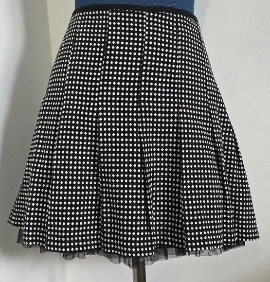 Cute skirt Black and white polka dot design Lined with black sheer trim Pleated style Back zipper c... Show more