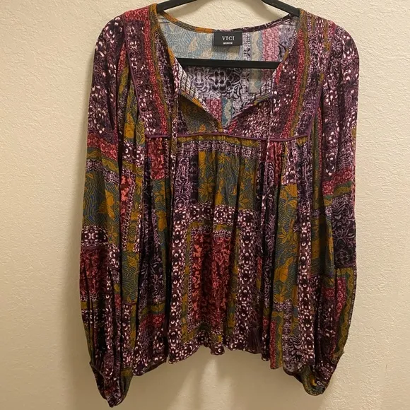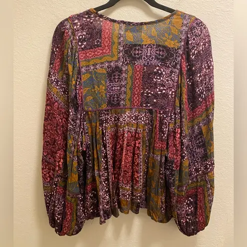 In excellent condition Split neck Flowy Relaxed fit Long sleeve with elastic cuffs Smocked chest Ha... Show more