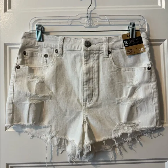 NWT Aeropostale High Rise Shorts Size 10 White Distressed 11 inch rise 11 inches long
