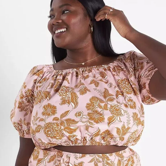 Super cute Lane Bryant Classic Crop Square-Neck Puff-Sleeve Top! Square neck Puff sleeves Covered e... Show more