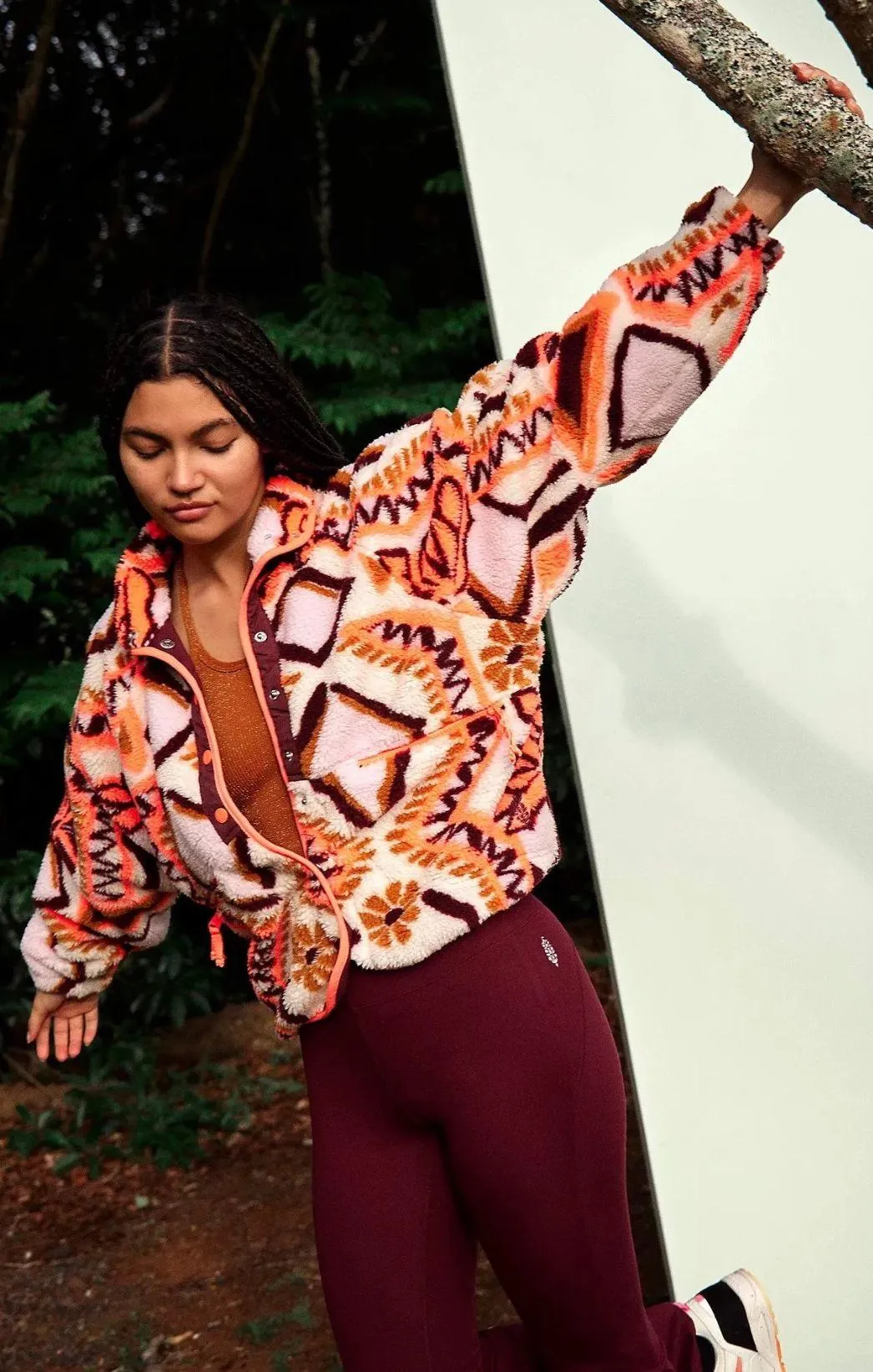 SOLD OUT PRINT Brand new without tags Size XS Perfect to layer over activewear or streetwear, this fleece jacket features a button-up front with cool zippered pocket details. The Fit: Easy, slouchy silhouette that hits right at the waist The Feel: Fuzzy fleece, warm with room to layer underneath The Features: Nylon patches; zipper pockets; button-front closure, elastic cuffs Best For: Layering on and off during hiking trips; throwing on after the gym