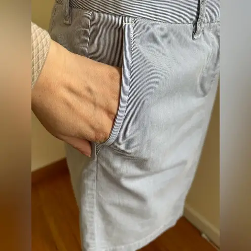 L.L Bean White And Blue Strip Summer Midi Skirt 97% Cotton. SZ 6 Front And Back Pockets measuremen... Show more