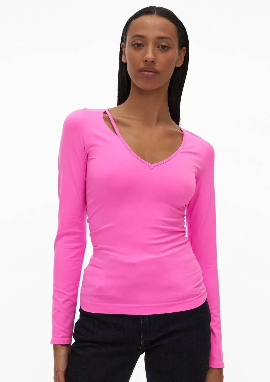 Helmut Lang Slash V-Neck Shirt in Disco Neon Pink. The Helmut Lang Slash V-Neck Top is a seamless je... Show more