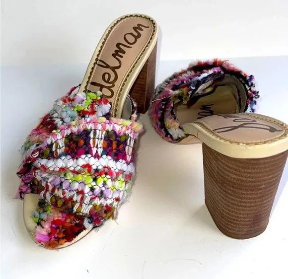 Sam Edelman Oda Slide Sandal in Multicolor tweed print Mule Tweed fabric knot top Block heel Open to... Show more