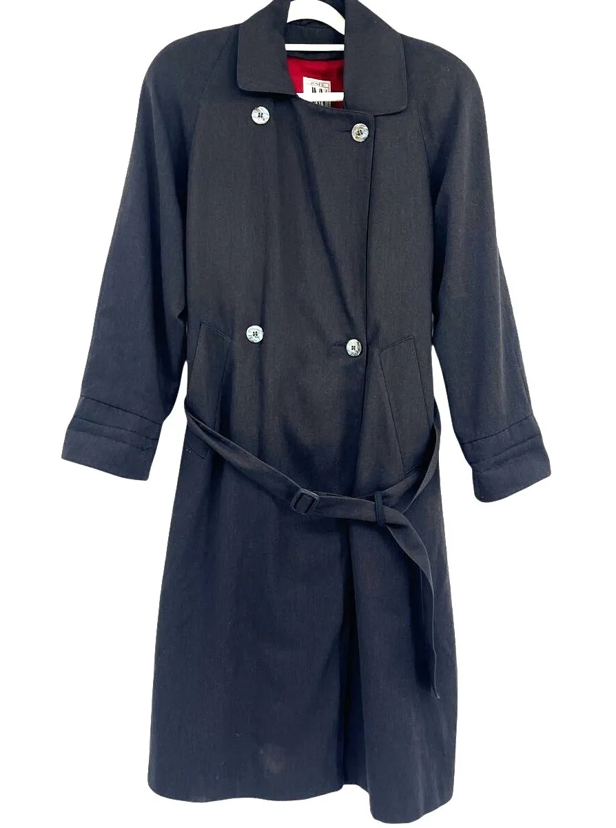 Vintage 90s Jones New York Black Trench Coat Belted Button Front Classic Old Money Vintage Preppy
