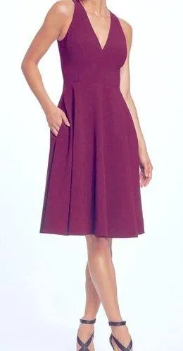 “The Catalina is a crepe cocktail dress with a fit and flare silhouette and a v-neckline that flatters all body shapes. The bodice is fitted and tapers in to hug the waist, and the knee-length skirt is playful but polished. This sleeveless dress has modest straps wide enough to cover the shoulders and two side pockets.” • color is called dark magenta • 97% polyester / 3% spandex exterior, 100% poly lining • brand new with tags! Measurements: 16” pit to pit 42” length