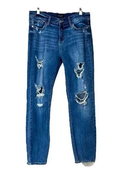 Judy Blue Jeans Boyfriend Fit Dark Wash Distressed Mid Rise Size 9/29 Style Details • Boyfriend fit... Show more