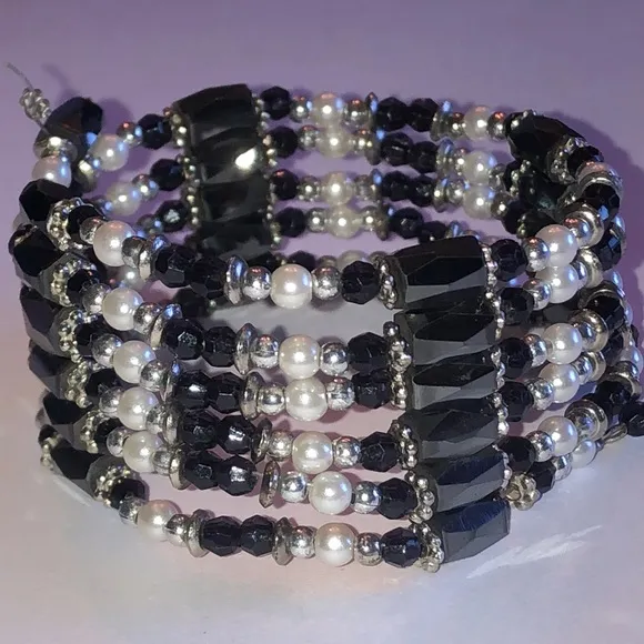 Hematite, no closure. Magnetic and adjustable to fit however you want. Hematite beads stick to each other for closure A6 Estate Jewelry costume jewelry mid century modern boho retro vintage boho