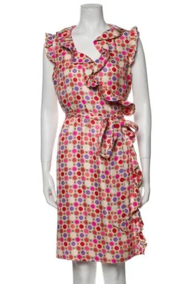 Florence Broadhurst for Kate Spade Silk Knee Length Wrap Dress Colors: Pink, Red, Purple, Coral ge... Show more
