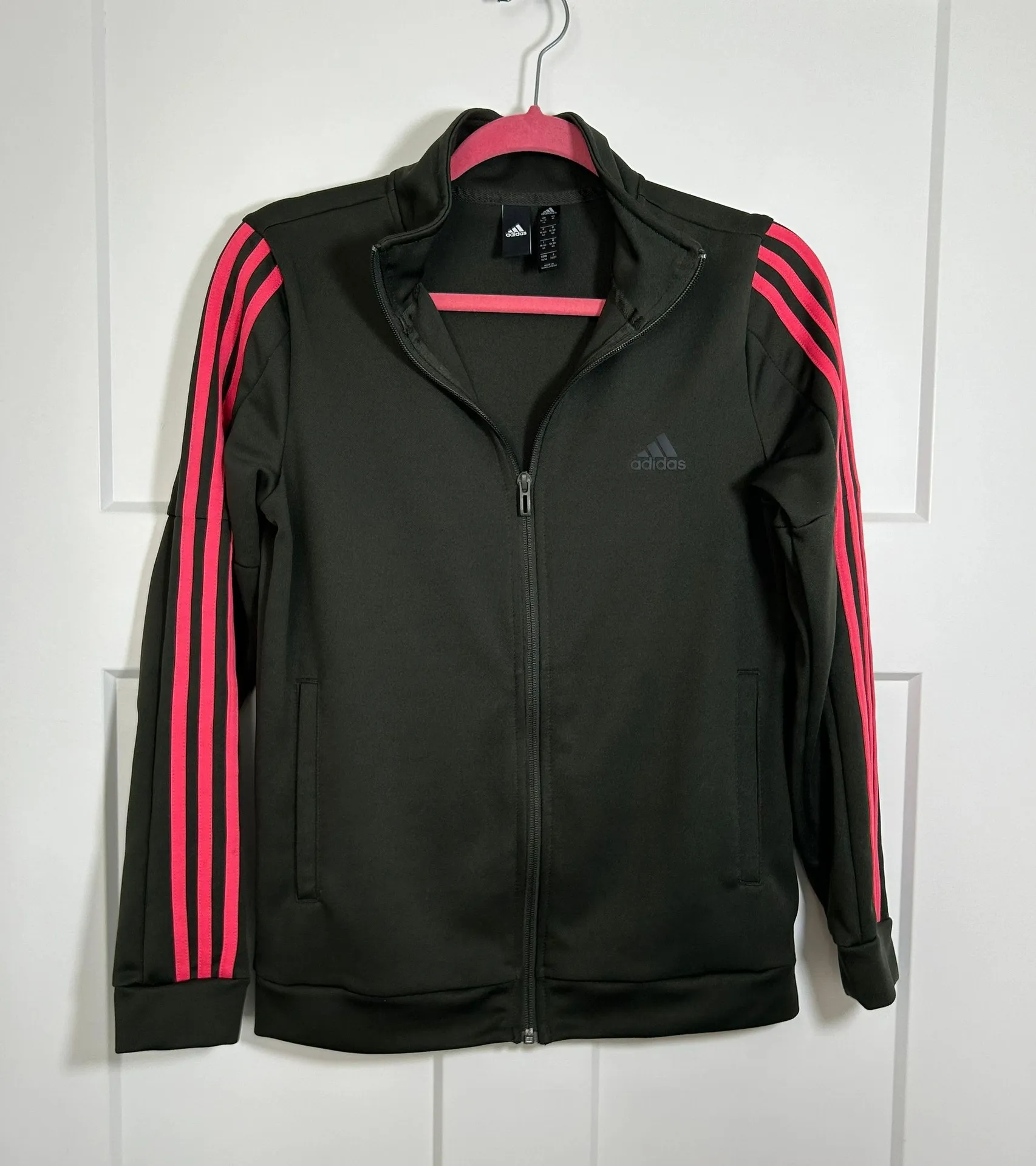 Women’s size medium adidas jacket, full zip adidas track jacket. Smooth silky athletic material. M... Show more