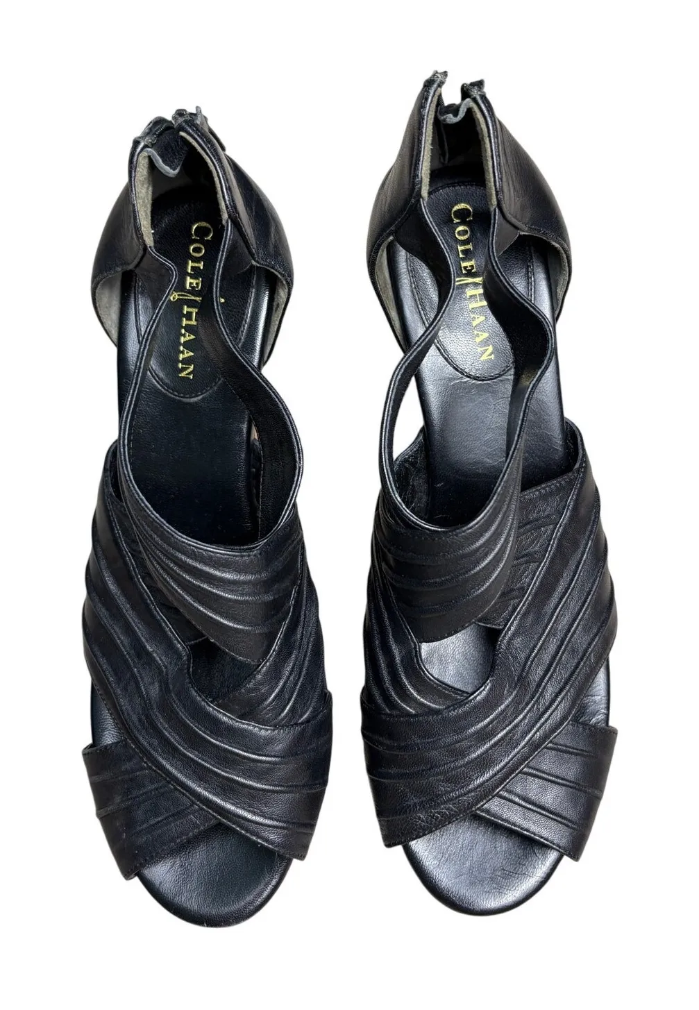Cole Haan Shayna Pleated Leather Wedge Black Sandal Size 8 Excellent condition- no stains, scuff on... Show more