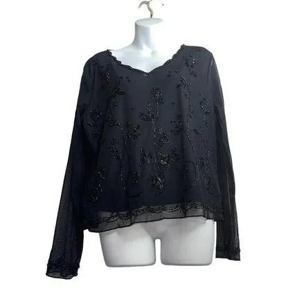 Notations Black Chiffon Embellished Top Size XL - $7 - From Adaliz