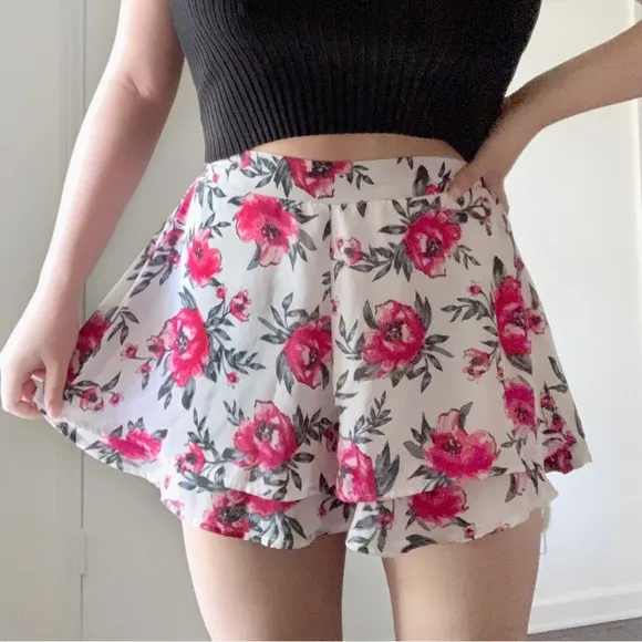 Super fun & flirty white flowy shorts with big, pink floral print. In great condition. Size small.
