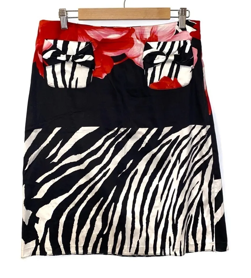 NEW Vintage Grace Dane Lewis Workshop Floral Zebra Multicolored Cotton Skirt Black Size 12 - $16 New With Tags - From Marina