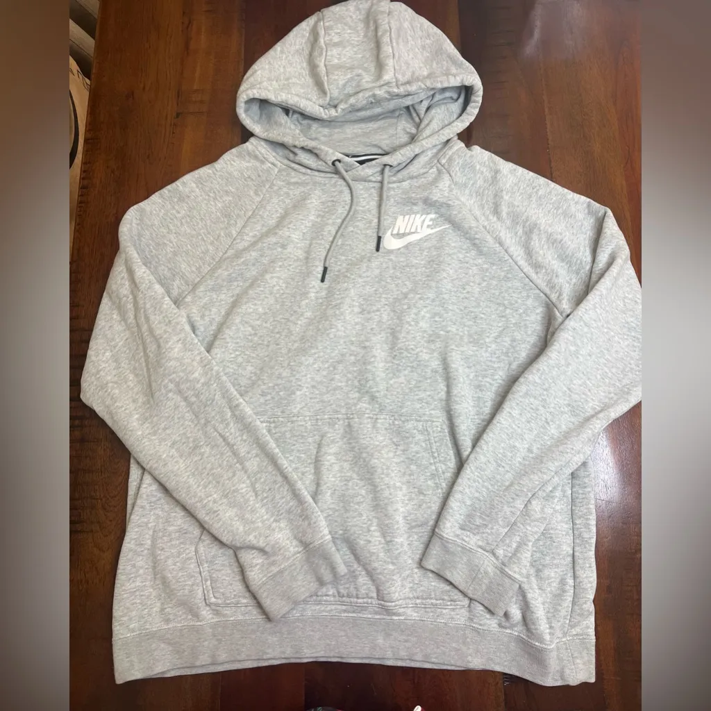 Cozy and sporty Nike hoodie in classic gray. Features include: • Pullover style with adjustable dra... Show more