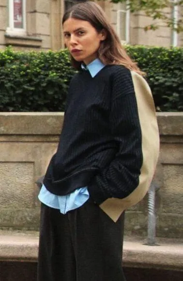 Sweatshirt made with viscose blend fabric. Round neck and long sleeves with slits. Contrast fabric d... Show more