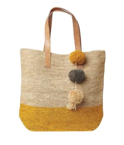 NWT Mar Y Sol Montauk Straw Raffia Large Tote in Sunflower New with tag Named for the sandy beaches of one of our favorite summer destinations, the roomy Montauk carryall is adorned with signature pom poms and modern color block detail. It's the perfect getaway and poolside companion. • 100% crocheted raffia • Cotton lining • Snap closure • Leather handles • Raffia pom poms • 16"H x 6.5"D x 19"W; 8.5" strap drop - Approximate dimensions, each piece is handmade Folds up for travel WN9920 Beach, resort, raffia, tote. Bag, straw bag, pom poms, travel, pool NWT Mar Y Sol Montauk Straw Large Tote in Sunflower