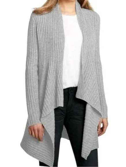 Autumn Cashmere for Bergdorf Goodman Women’s Size S Heather Gray Merino Wool Ribbed Knit Open Drape... Show more