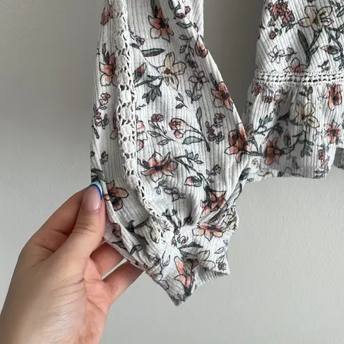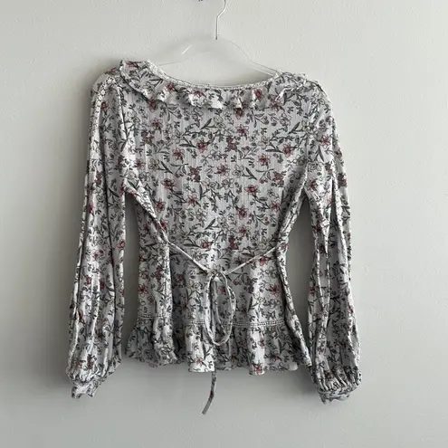 American Rag Boho/Cottagecore Floral Long Sleeve Blouse with Back Waist Tie + Lace Cutouts & Trim... Show more